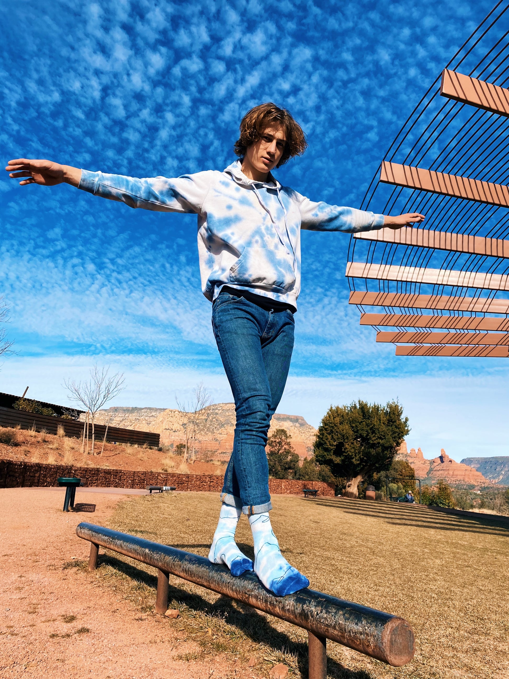 Mountain outlines with a tie-dye wash to make this a water painting on your feet.